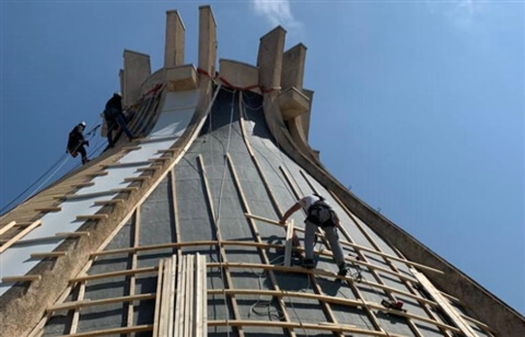 Anche la sostituzione degli infissi posti tra le nervature, eseguita lavorando su fune, ha richiesto precisione e coordinamento tra le imprese. Il cantiere, durato un anno, si è distinto per la collaborazione costante tra progettista, maestranze e fornitori, creando un clima di cooperazione che ha trasformato la complessità tecnica in un percorso condiviso.